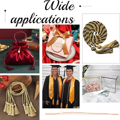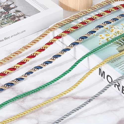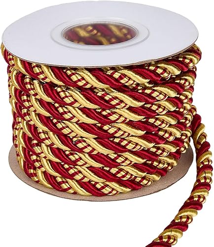 CABODYALS Cordon Décoratif Tressé en Soie et Polyester 9.3 m 8mm Rouge et Doré pour Décoration D'Intérieur Embrasses de Rideaux Tapisserie Remise de Diplôme Bricolage