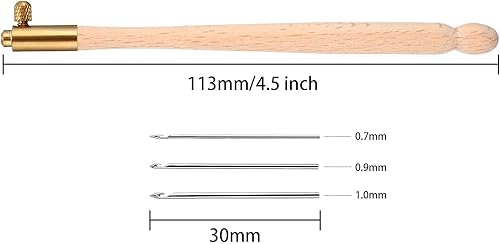 CHUANGOU Outils Sequin Aiguille Outils à Aiguilles de Perles Broderie Manche en Bois Crochet Tambour avec 3 Aiguilles 0.7, 0.9, 1.0 mm, pour Broderie Bricolage
