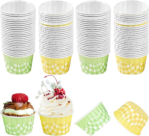 Lot de 100 caissettes en papier pour muffins, cupcakes, muffins, cupcakes, pour anniversaire, mariage, fête (jaune et vert)
