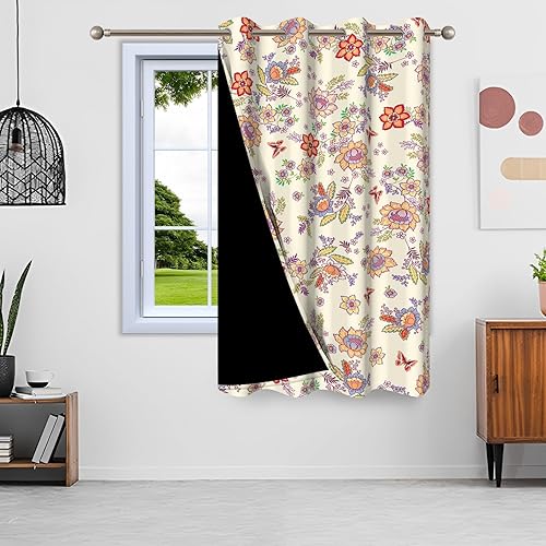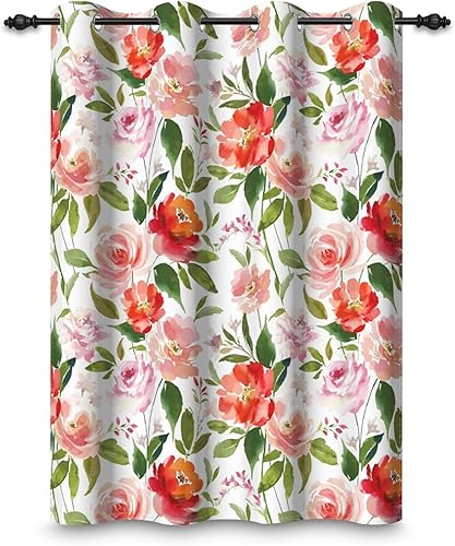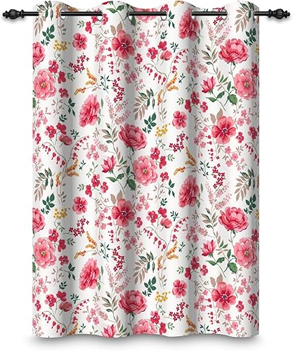 ggaimwf 117x183cm Rideau à œillets fleuri Rose Fleuri Esthétique Botanique Fermière Style champêtre Rideaux isolants Thermiques Oeillets Occultants Rideaux pour Chambre de fille Salon,1 panneau simple