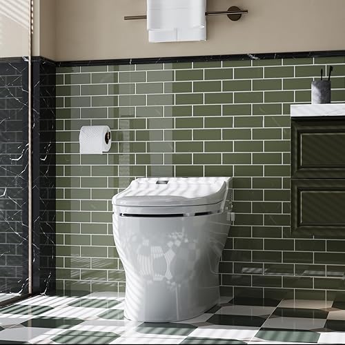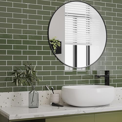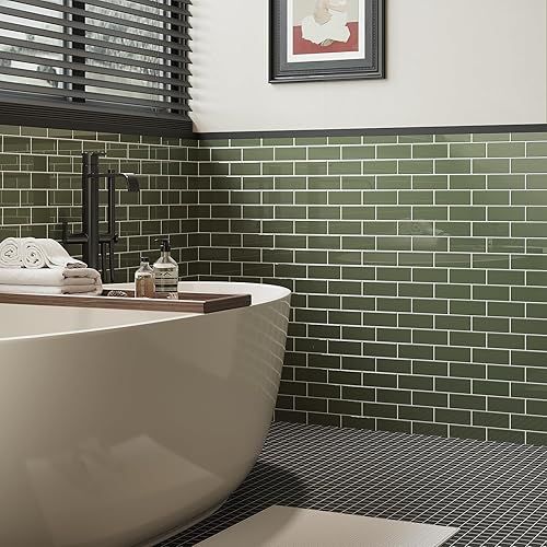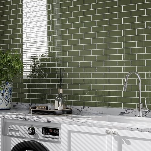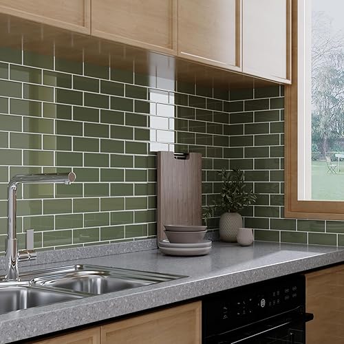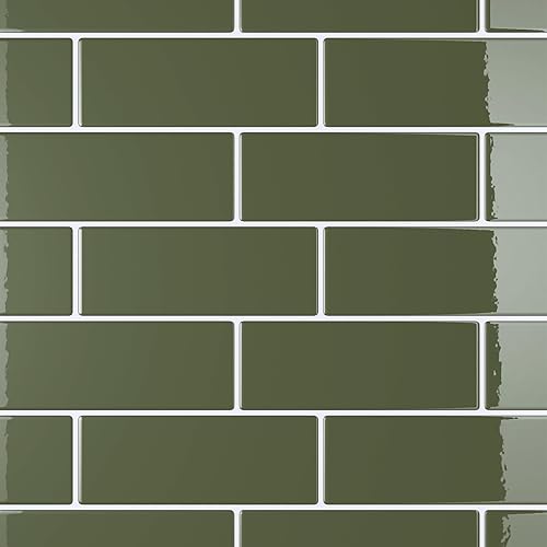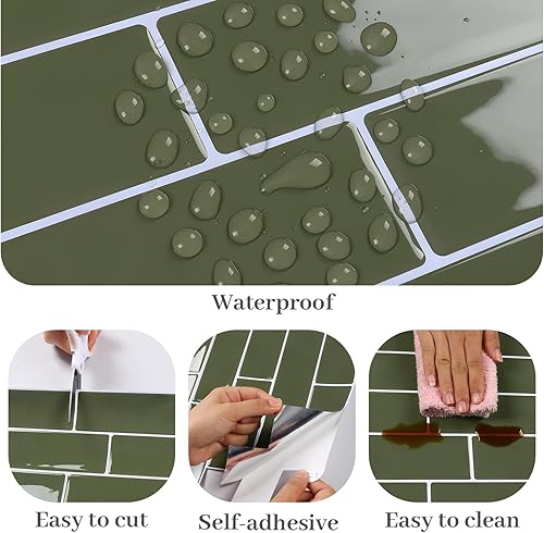 VaryPaper Lot de 10 autocollants 3D imperméables pour carrelage de salle de bain et cuisine - 30,5 x 30,5 cm - Vert olive