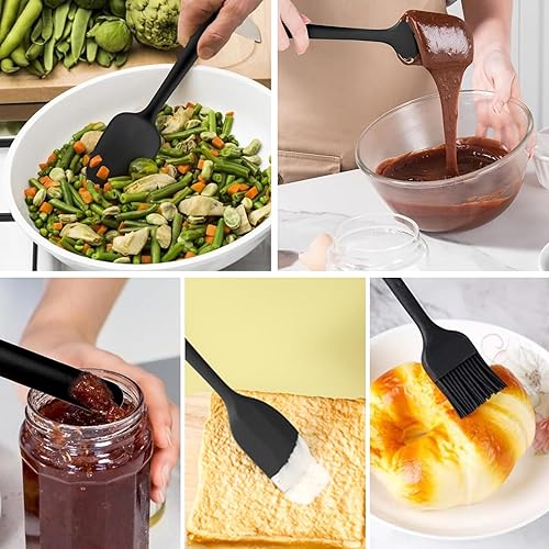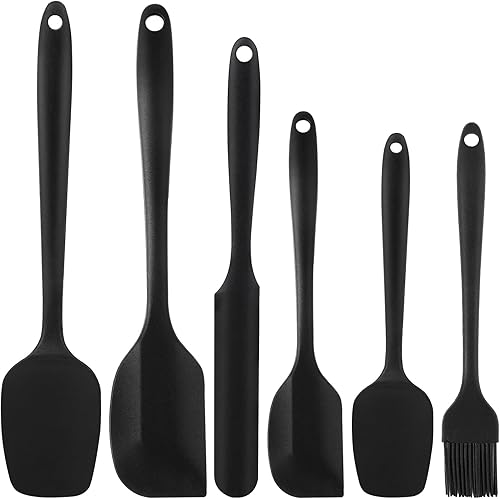 Set de 6 Spatules en Silicone - Maryse patisserie 28 cm - Silicone Alimentaire - Résistant à la Chaleur, Antiadhésif, Facile à Nettoyer - Pour Cuisine, Pâtisserie, Mélange (Noir)