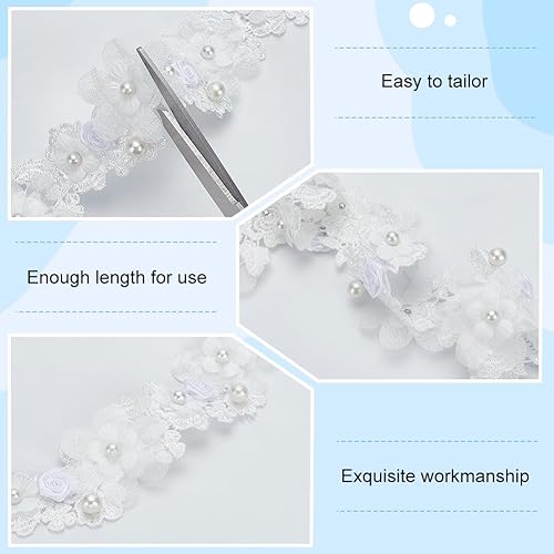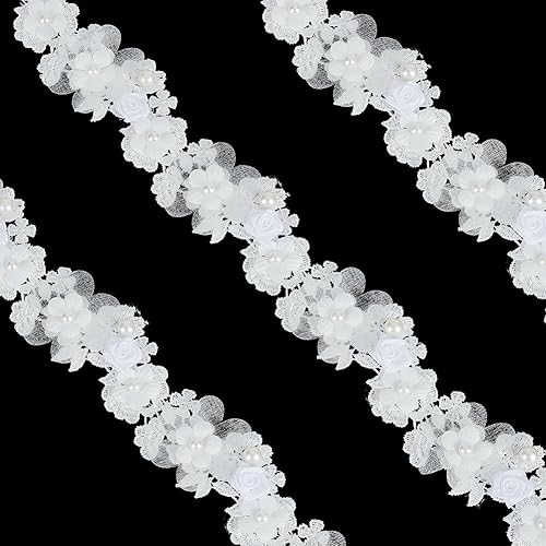 WEBEEDY 15 Verges 3D Ruban Garniture 4 cm de Garniture Brodée de Fleurs de Rose Perle Blanche pour L'Artisanat DIY en Couture Fournitures de Robe de Mariée Emballage Cadeau Rideaux Décor de Fête