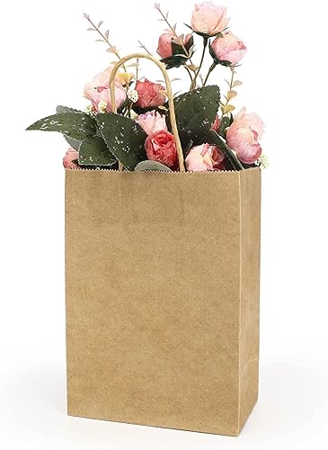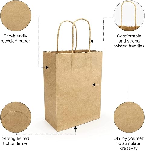 Sac Kraft avec Poignée, 100 pièces Sac Cadeau, Sacs en Papier Marron, Sac Cadeau Kraft, Sac de Courses/Emballage cadeau pour Anniversaire, Noel, Mariage, Brun, 21x15x8CM