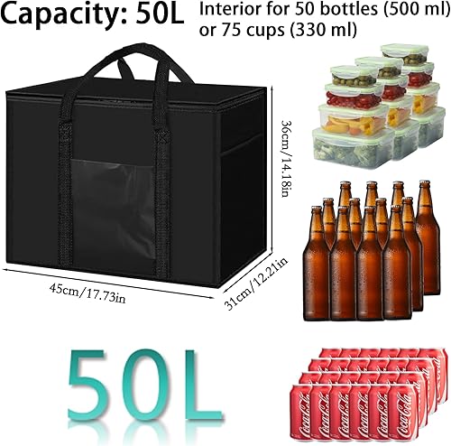 Sac Isotherme 50 litres, Grand Sac Isotherme Pliable pour Voiture, pour Barbecue, Camping, Pique-Nique, Courses, 45 x 31 x 36 cm
