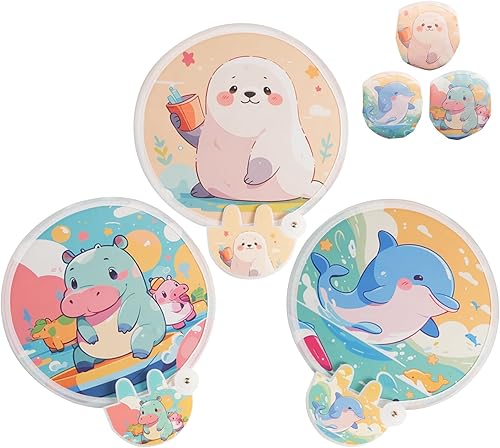 FOSDICK 3 PCS Éventail Rond Pliant, Eventail Pliable, Animal Eventail Rond Pliable de Poche, Mini Éventails Ronds Pliants, Éventails Pop up Pliant à Main Portable, pour Festival, Mariage, Fête