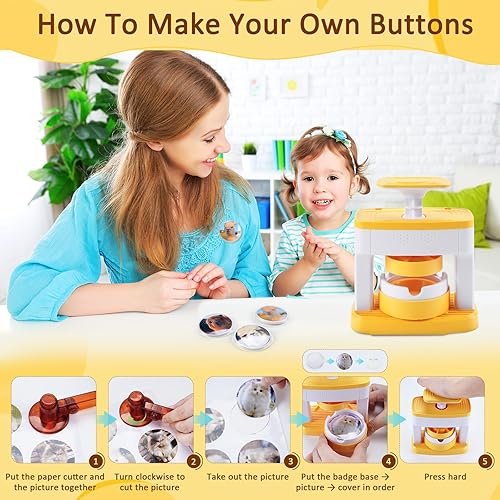 kamoly Machine à Badges, DIY Bouton Maker Badge Die Moule Dispositifs, Broche Pin Making Machine avec 48 pièces en Plastique et Coupe Cercle pour Fête et Cadeaux