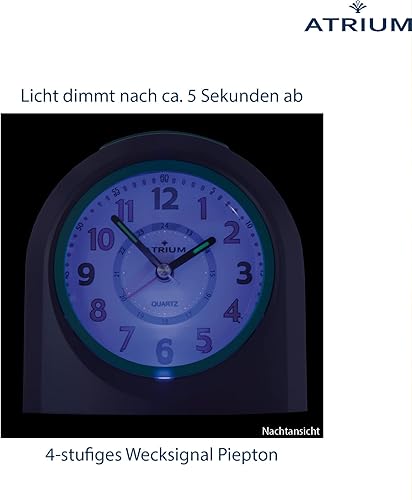 Réveil analogique ATRIUM lila sans tic-tac, avec éclairage et fonction snooze A921-8