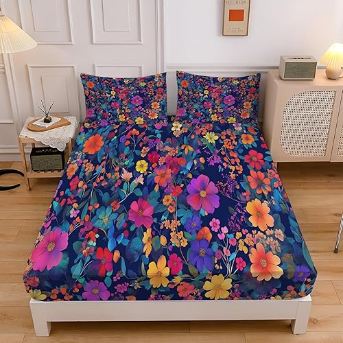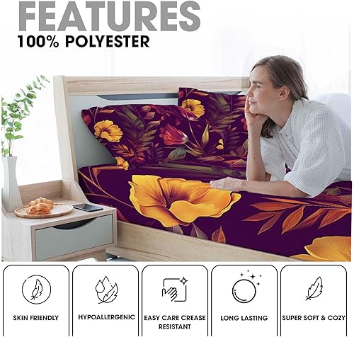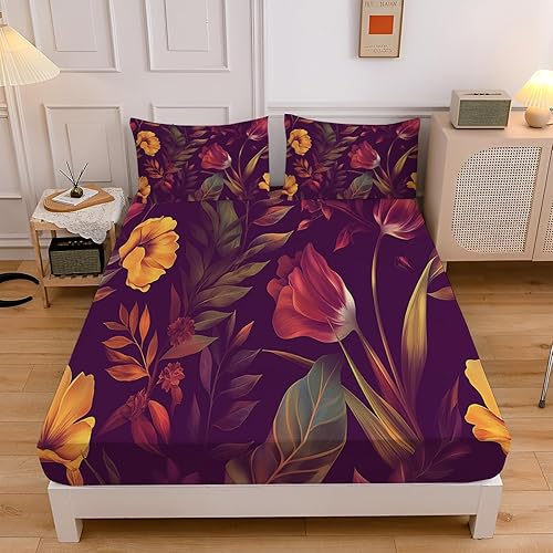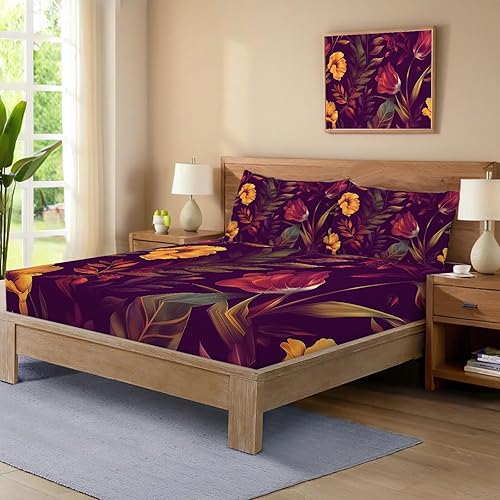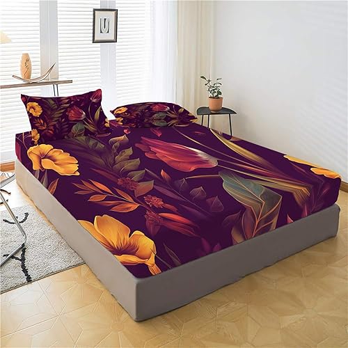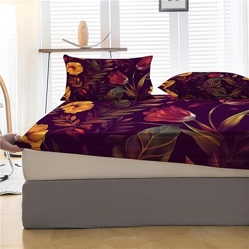 Drap Housse pour Matelas Épais, 3D Impression Microfibre Drap-Housse Épaisseur Allant Jusqu'À 30 Cm - Respirant Et Doux, pour Chambre Décoration (Motif Rose Rouge,140X200Cm)