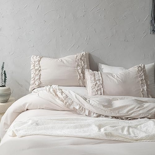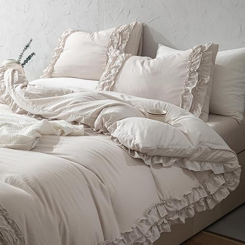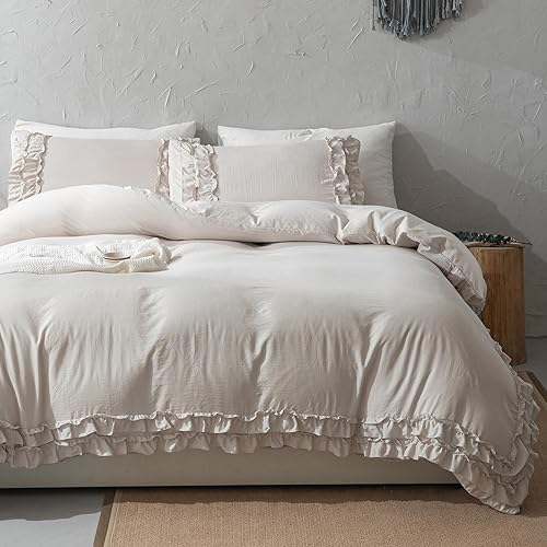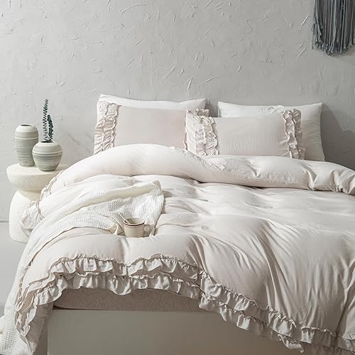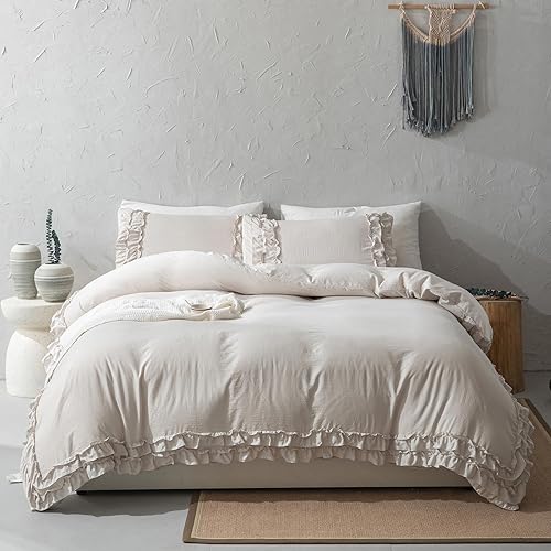 Herside Parure de lit Bohême à 2 couches, en microfibre douce, avec housse de couette de 240 x 220 cm et 2 taies d'oreiller de 80 x 80 cm (beige/gris, 240 x 220 cm)