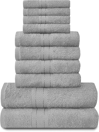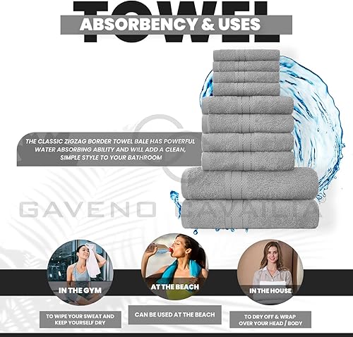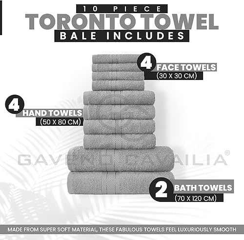 GC GAVENO CAVAILIA Lot de 10 Serviettes de Bain 100% Coton égyptien, 4 Visage, 4 Mains, 2 Serviettes de Bain, de qualité supérieure, très absorbantes, lavables en Machine, argenté