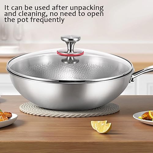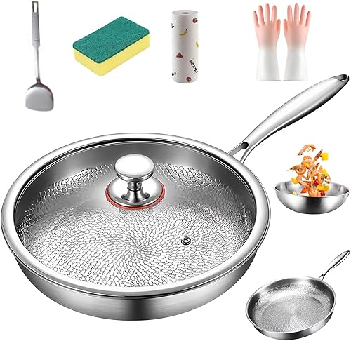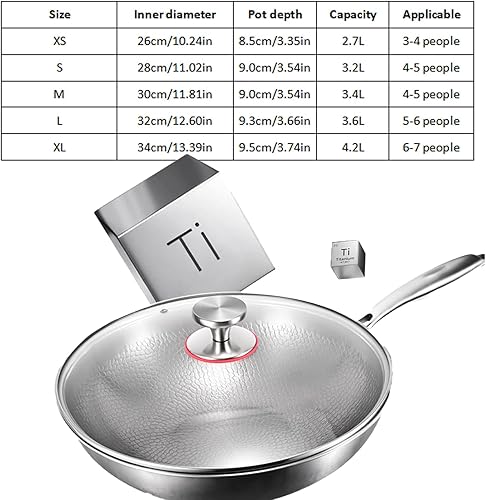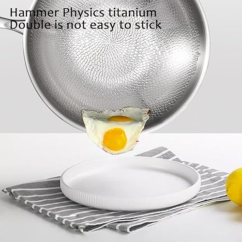 Poêle Pro martelée en titane avec couvercle, 2025 épaisse, ultra durable, résistante aux rayures, non revêtue, antiadhésive, pour la cuisson (XL-34 cm)