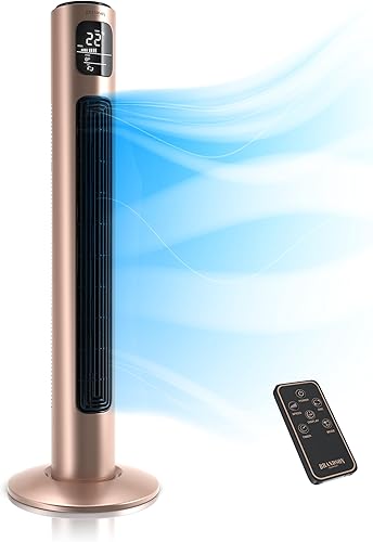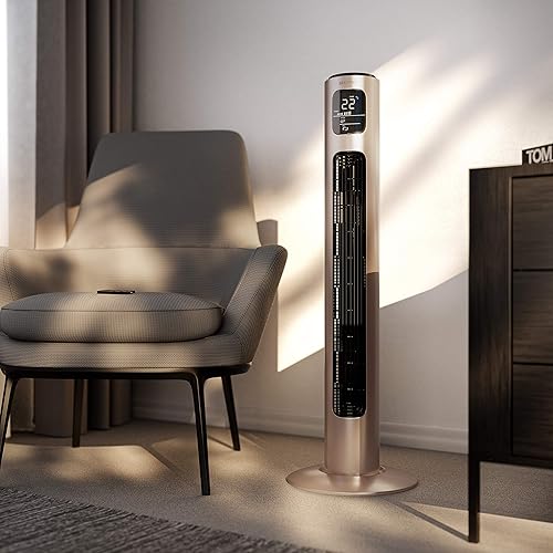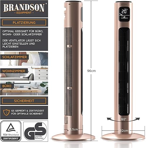 Brandson - Ventilateur Colonne avec télécommande - oscillant - Silencieux - 45W - 3 Niveaux de Vitesse - minuterie - 3 Modes de Fonctionnement - Oscillation 60° commutable - Ecran LED - Rouge Beige