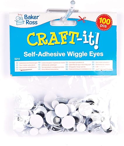 Baker Ross Lot de 100 Yeux Mobiles Auto-Adhésifs Noirs et Blancs - Pour toute décoration de vos personnages, Assorted
