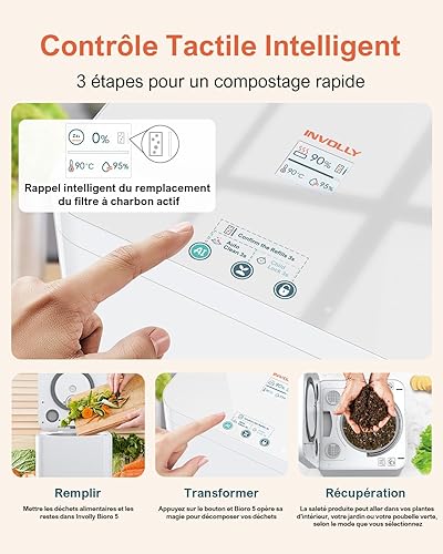 Involly Premier Composteur Cuisine Electrique au Monde avec Nettoyage Automatique, Transformez 3-6H Vos Déchets Alimentaires en Compost, Compost sans Odeur Toute l'année avec Lumière UV, Écran LED
