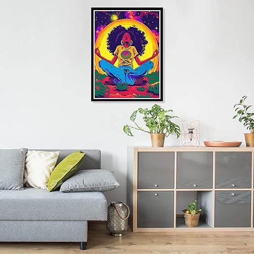 Pavemlo 5D DIY Diamond Painting Kits Femme Africaine, Diamant Peinture Point De Croix Broderie Lune, Strass Complet Image Arts Pour Peinture Salon Chambre Décoration Sticker Mural 30x40 cm