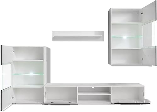 Tidyard L'Ensemble Complet de Vitrine Murale de Meuble TV/Meuble TV Mural avec Eclairage LED 5 Pièces Style Moderne Noir