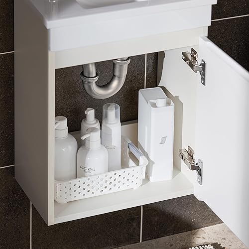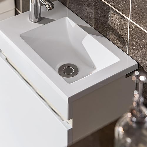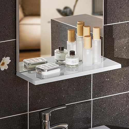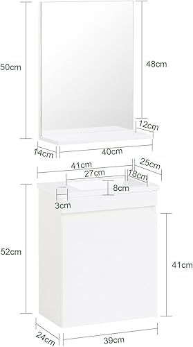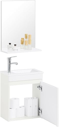 SoBuy Meuble Suspendu pour Lavabo avec Miroir Meuble sous Vasque avec Miroir Ensemble de Lavabo en céramique avec Miroir Meuble Lave-Mains avec Miroir, Blanc, BZR170-SET