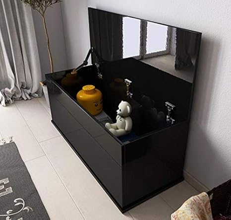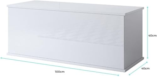 MB Muebles Bonitos, Coffre de Rangement Ariel, Grande capacité, Meuble en Mélamine Brillante, Couleur Blanc, 100x40x40 cm