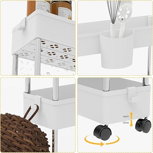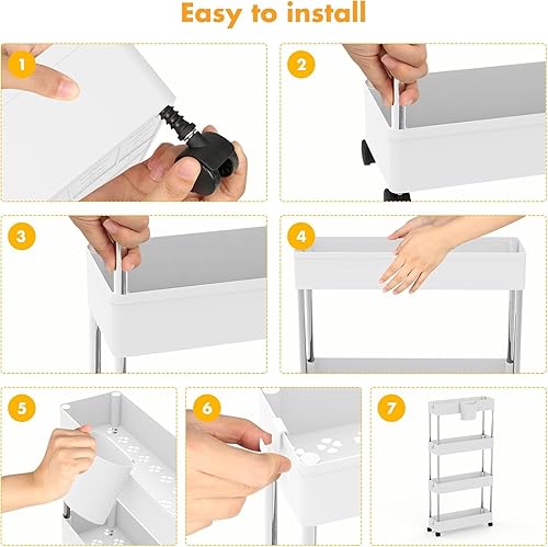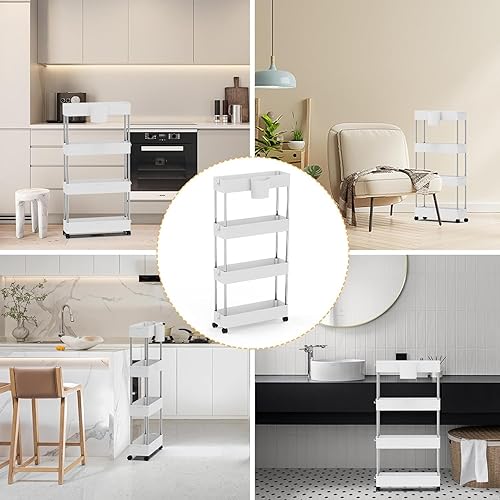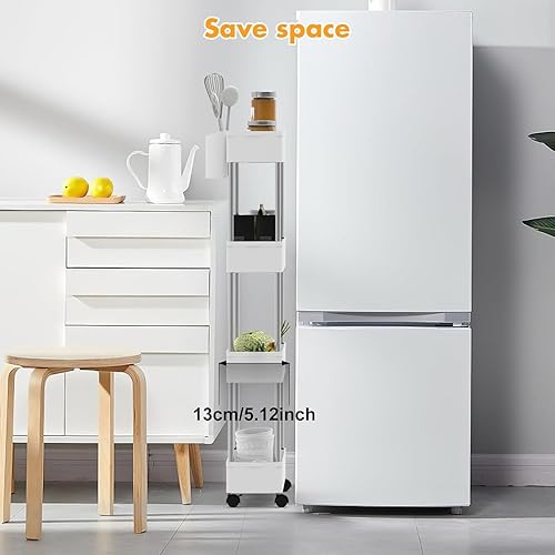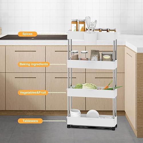 HaodaCulture Chariot de Rangement Mobile sur 4 Niveaux, Chariot de Rangement Slim,Panier en Maille avec Poignées Ergonomiques pour Salon, Salle de Bain, Cuisine, Bureau 40x13x86cm