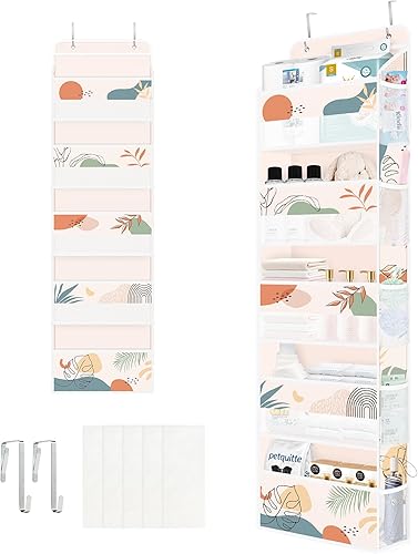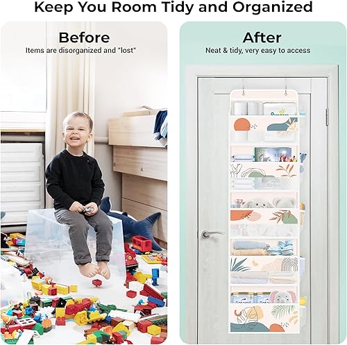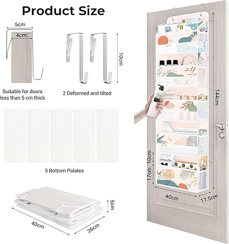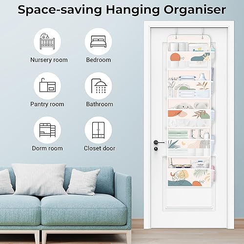 Clastyle Organisateur Suspendu Tissu Bohème Rangement Suspendu Femme Filles pour Jouet Couche Vêtement Étagère Suspendue Porte pour Chambre Salle de Bain Pantry, Beige, 5 Compartiments