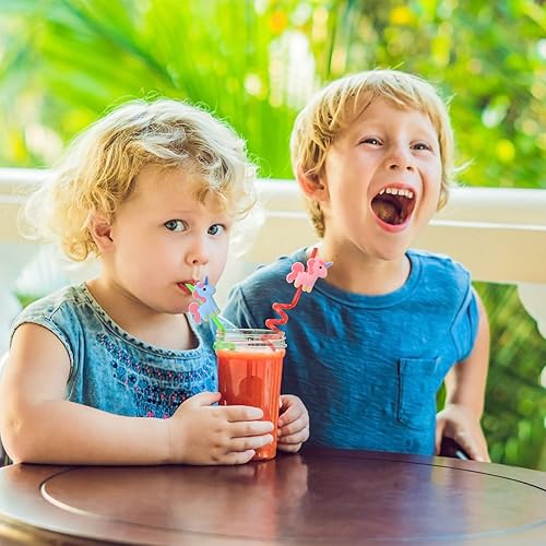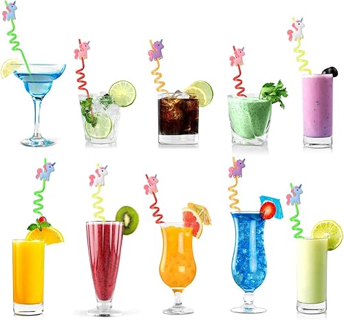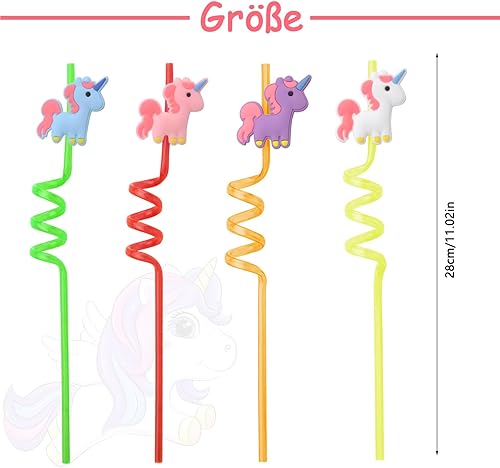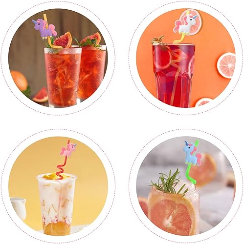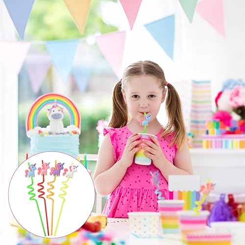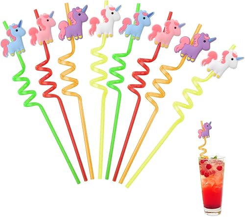Lot de 8 pailles licorne pour enfants, réutilisables, en plastique, pour fête bouclée, lait, jus, décorations pour réunion de famille, fêtes d'anniversaire d'enfants (01)