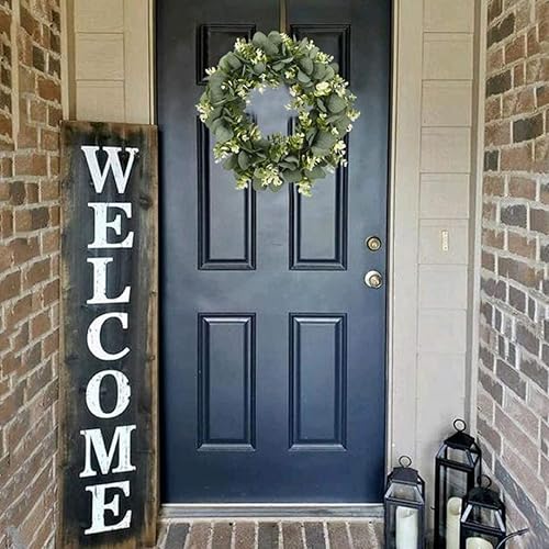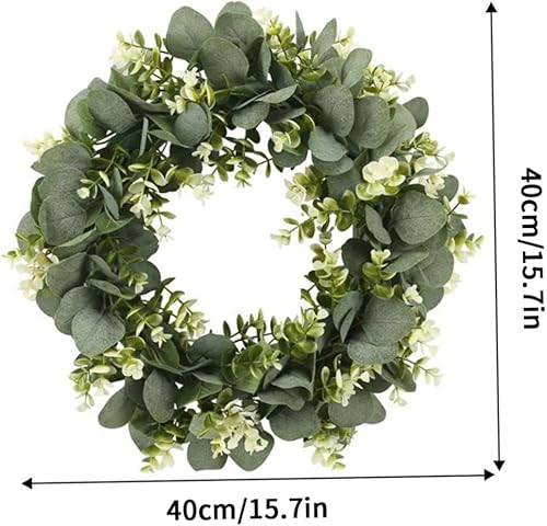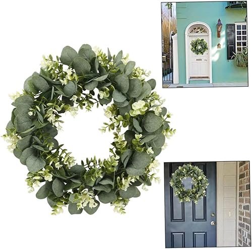 Couronne de Porte Fleurs artificielles, Couronne de Printemps pour Porte d'entrée, Plante Artificielle Couronne de Couronne d'Eucalyptus Garland