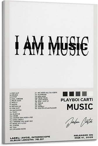 gimmygo Poster sur toile « I AM MUSIC TRACKLIST » - Art mural esthétique - Peinture décorative vintage pour salon, chambre à coucher - 30 x 45 cm - Style cadre