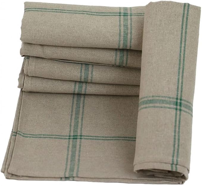 Linandelle - Lot de 6 torchons de cuisine pur Lin NORMANDIE - Vert - 55x75 cm