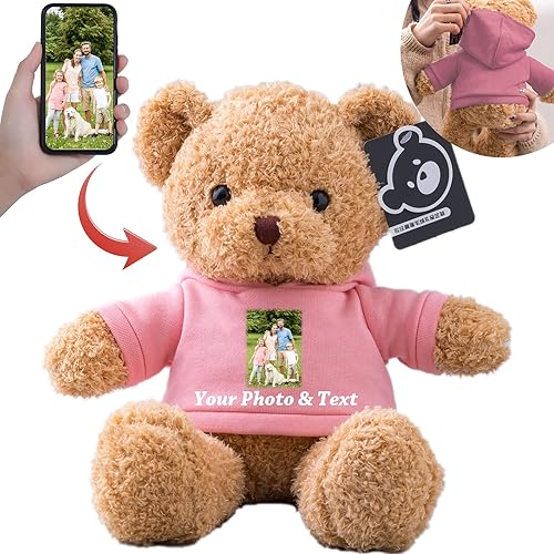 MeterBear Nounours Saint Valentin avec Texte+ Photo Personnalisé, Cadeaux Personnalisés pour Nounours comme Cadeau Saint Valentin Femme Homme Cadeaux de Noël Cadeau Anniversaire (30cm-Texte+ Photo)