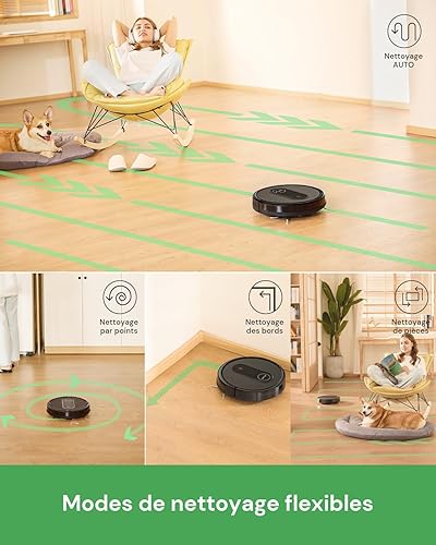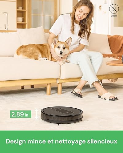 Vactidy Aspirateur Robot T7, Robot Aspirateur Laveur 2 en 1, 120min d'Autonomie, App/Alexa/Siri/IFTTT Contrôle, Mince et Silencieux,Idéal pour Les Poils d'animaux, Cheveux, Poussière…
