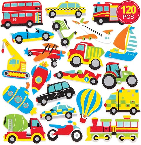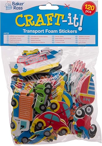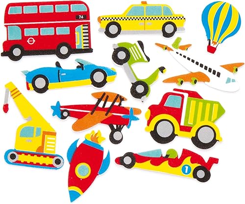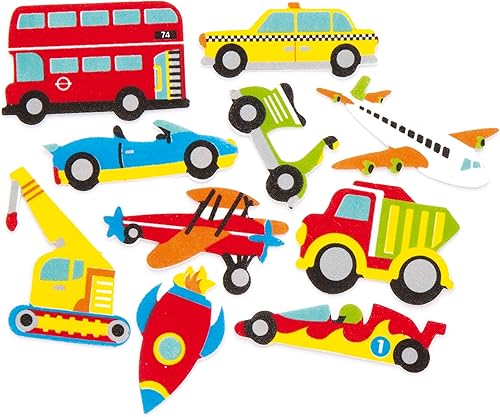 Baker Ross Autocollants véhicules en mousse (lot de 120) - Autocollants amusants en relief sur le thème des véhicules pour scrapbooking.