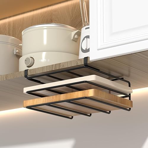 Support pour planche à découper en acier inoxydable sans perçage - Organiseur de cuisine sur l'armoire - Ustensiles de cuisine comme étagère télescopique pour le rangement et la sécurité - Support de