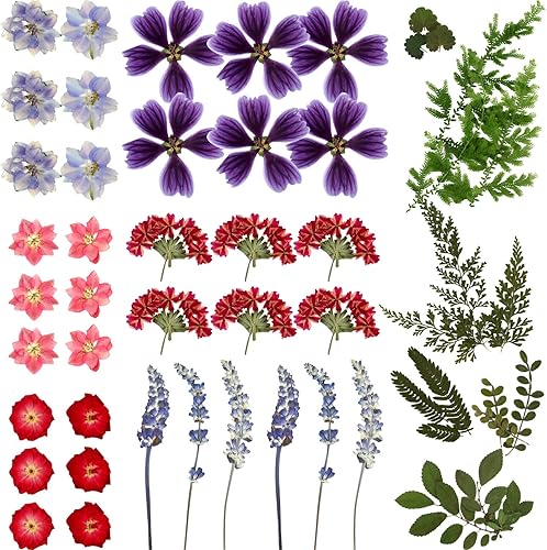 Fleurs Séchées Pressées Réelles Fleurs Feuilles Séchées Colorées Plusieurs Fleurs Séchées Naturelles pour DIY Fabrication Résine Époxy Artisanat Fait à Main Ongles Pendentif Bijoux