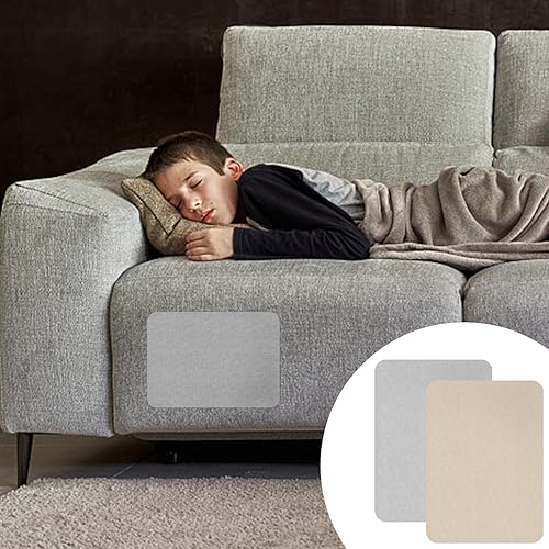 Lot de 2 Accessoires de Réparation de Tissu - Kit pour Toile et Lin, Patch Autocollant Rectangulaire pour Canapé, Meubles, Tente (Beige)
