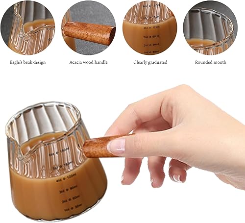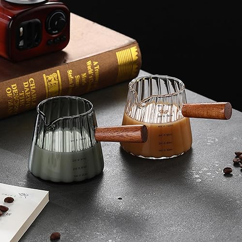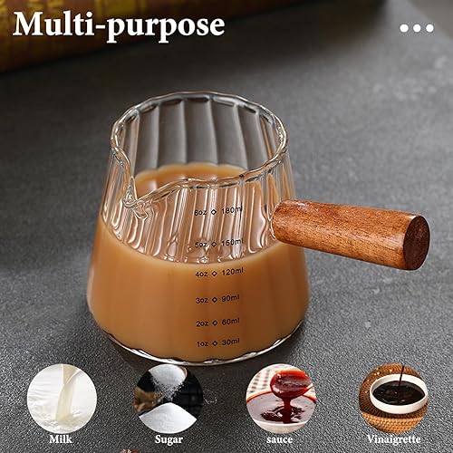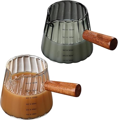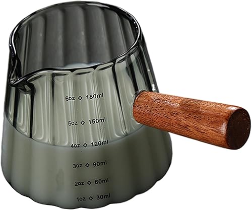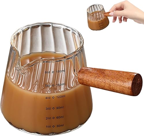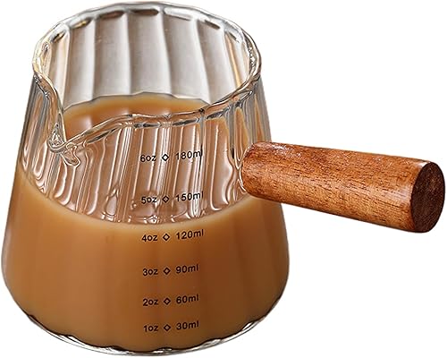 Weduspaty Cake Creamer Verre Verre en V Serme en V à double échelle Picherie de crémier 6 oz avec poignée en bois Tasse d'expresso à grains verticaux (transparent), Cake Creamer Récipient