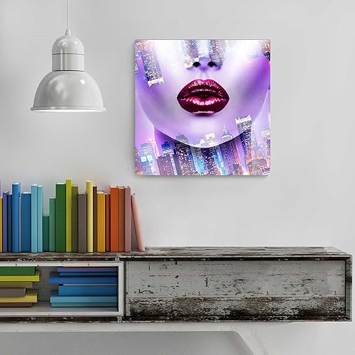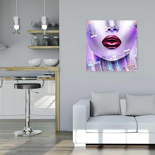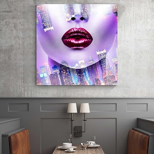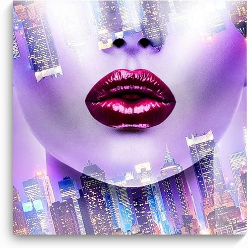 Feeby Impression Sur Toile Femme Ville 80x80cm Tableaux Tableau Mural Image Moderne Photo Décoration Murale Artistique Photographie Design Chambre Salon Cuisine Violet Rose Rouge