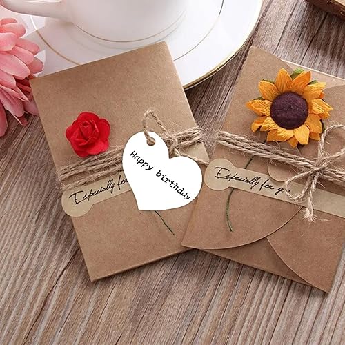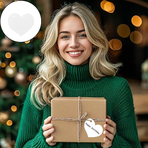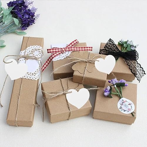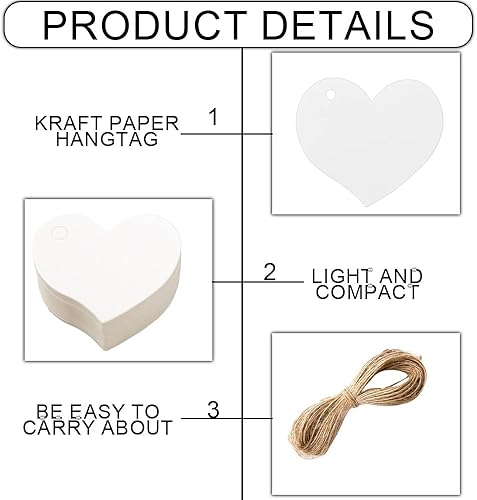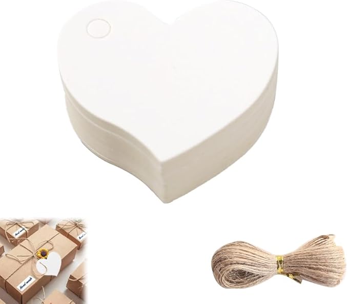 Azlanway Étiquettes Cœur en Papier Kraft Blanc – 100 Pendentifs avec Cordon pour Cadeaux, Mariage, Anniversaire, DIY, Noël, Saint-Valentin, Décoration