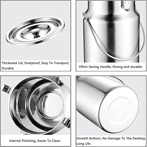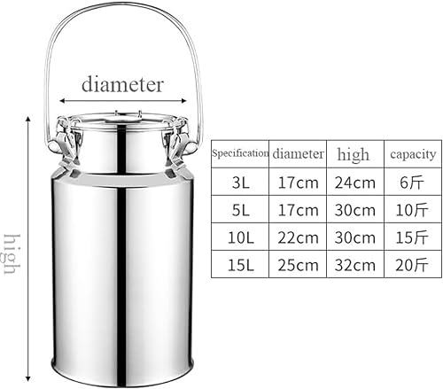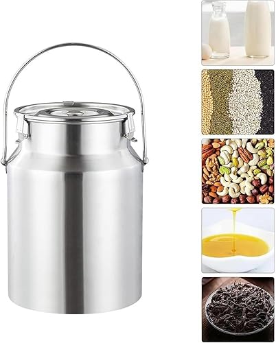 Pot a Lait INOX Bidon De Transport De Lait De Ferme 3L/5L/10L/15L Bidon De Baratte À Lait Pot Seau À Vin Baril Seau À Eau Huile Réservoir À Thé Réservoir Scellé en Acier Inoxydable HK15,5L