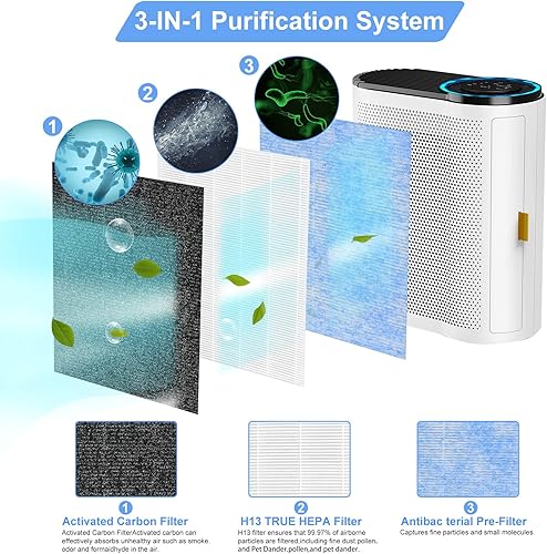 Lot de 3 filtres à air MK04 H13 de rechange pour purificateur d'air AROEVE MK04 MG04JH 3 étapes H13 Ture HEPA filtre de rechange comparé à la pièce # MK04LX