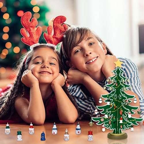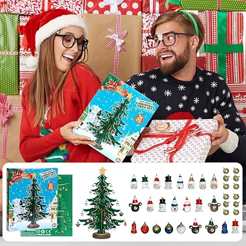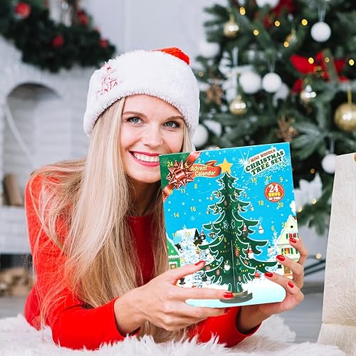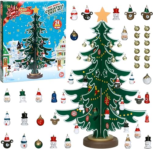 Suffolly Calendrier de l'avent avec Sapin de Noel et Ornements, Noël 24 Jours Compte à Rebours Calendrier de l'avent, Calendrier de l'avent Enfant pour Cadeau de Noël (6 Feuillages/36CM)
