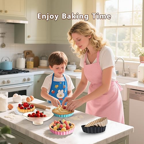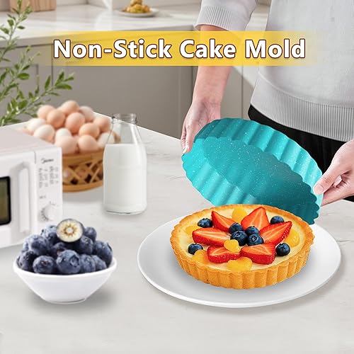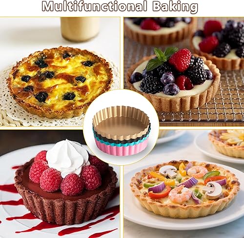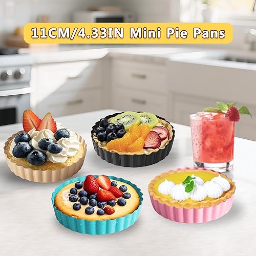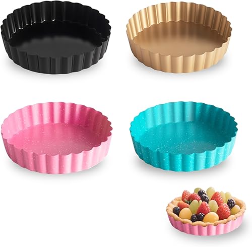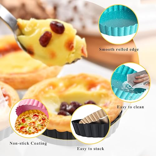 OlBuWa 4 Pièce Moules à Tarte aux œufs, Mini Moules à Gâteaux, Acier Inoxydable Oeuf Tarte Moule, Antiadhésif Plaque de Cuisson Moule à Cupcakes, Brownies, Gâteaux, Muffins, 11cm