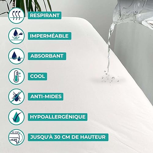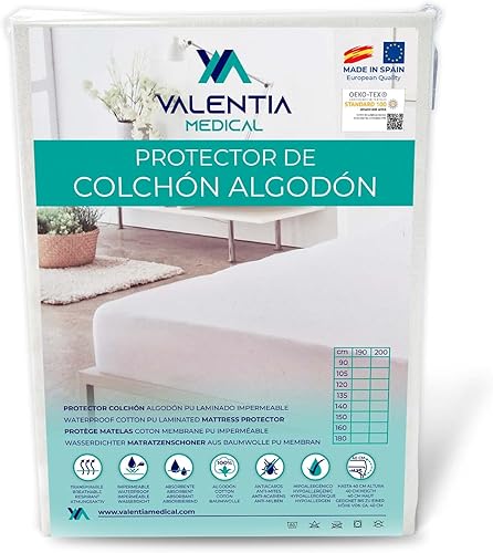 Protege Matelas 160x200 Impermeable 100% Coton - Housse de Matelas 160 x 200 cm Imperméable Coton Respirant – Lavable + Super Absorbante + Réglable - Oeko-Tex | VALENTIA MEDICAL