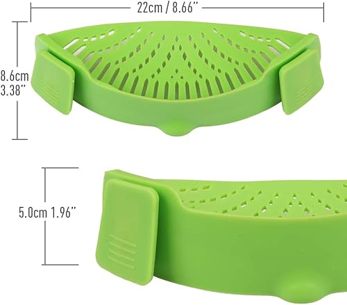 Cozihom Lot de 2 passoires à pâtes en silicone à clipser pour poêle, taille universelle, matériau de qualité alimentaire, résistant à la chaleur, vert