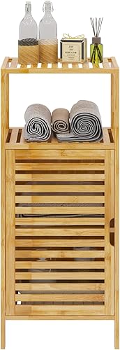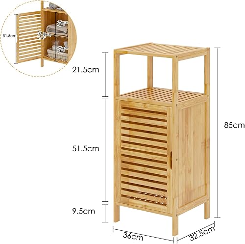 sogesfurniture Meuble de Rangement en Bambou, Armoire de Salle de Bain avec Étagère et 1 Portes à Persiennes, pour Salle à Manger, Salon, Cuisine, 36 x 32.5 x 85 cm