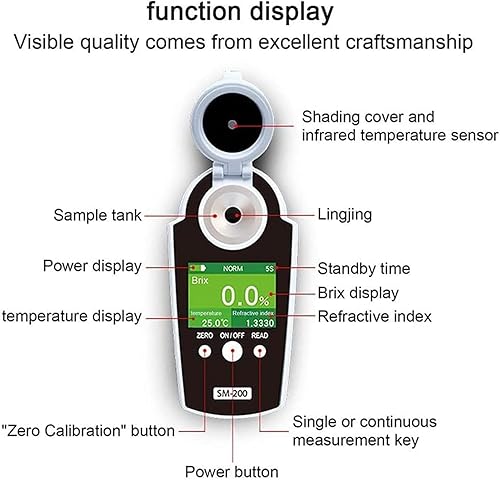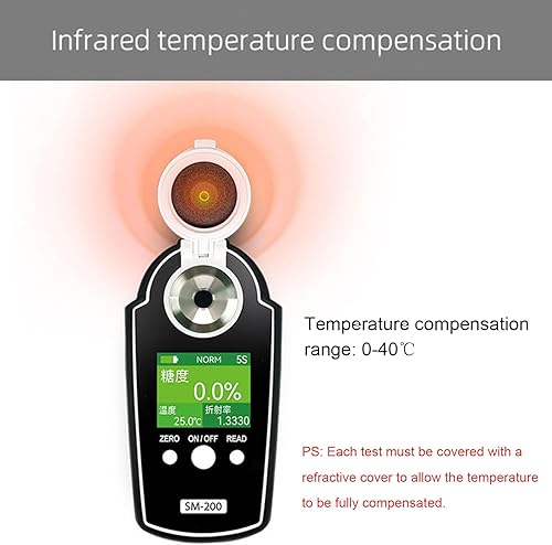 Réfractomètre Brix Portatif 0-95%, Réfractomètre Numérique Portable, avec Écran LCD Rétroéclairé, Compensation De Température, Précision ± 0,2%, Mesure Rapide en 3 Secondes