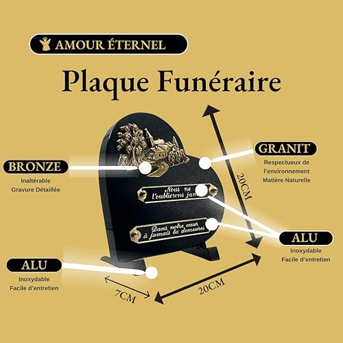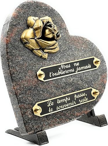 Coeur Plaque Funéraire Coeur | Plaque+funéraire |Pierre tombale | Plaque Commémorative | Plaque funéraire granit | Ornement funéraire (NOIRE)