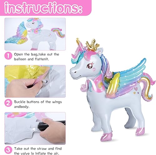 Ballons licorne debout, ballons licorne avec ailes, ballon à l'hélium licorne, décoration d'anniversaire d'enfant, décoration licorne pour filles enfants