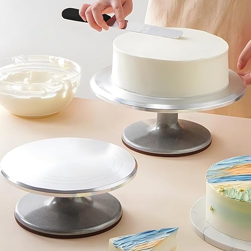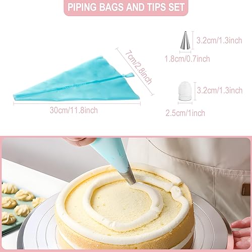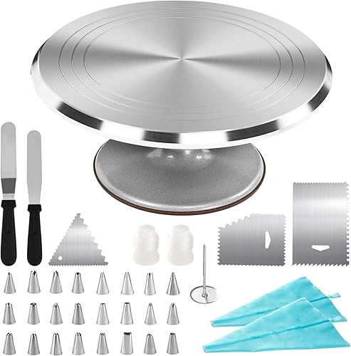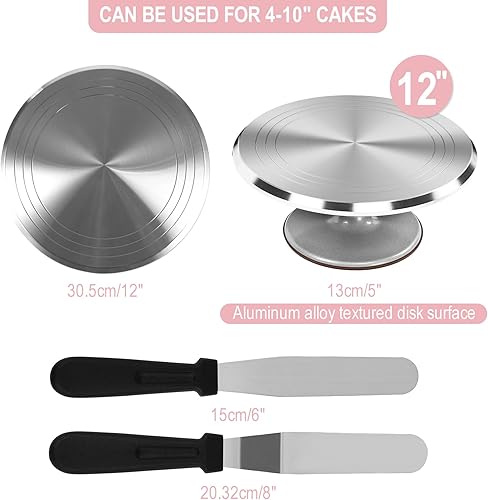 DAWOO Fournitures De Kits De Décoration De Gâteau 35 Pièces, avec Plateau Tournant à Gâteau en Alliage d'Aluminium De 28 Cm Et Sacs à Pâtisserie Jetables