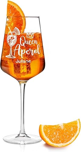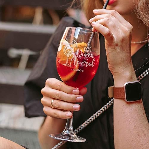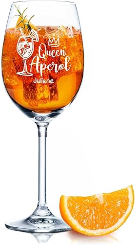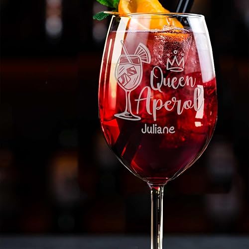 GRAVURZEILE Leonardo Aperol Spritz Verres à vin - Queen Aperol - Verre à vin avec gravure - Cadeau personnalisé pour hommes, femmes, maman, petite amie - Cadeau pour les amateurs d'Aperol - Quotidien